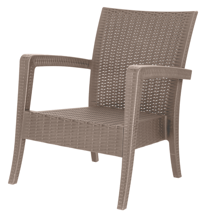 Красивое садовое кресло-диван Практичное сочетание кресла и дивана. Украсит любое дачное пространство, мансарду загородного дома или даже большую веранду кафе. Материал устойчив к ультрафиолету, температурным перепадам, влаге, морозу. Комфортная плетеная спинка обеспечивает уют. Устойчивые и надежные ножки не расходятся даже под большой нагрузкой. Максимально кресло-диван может выдержать вес до 250 кг. Купить кресло-диван— значит решить проблему размещения гостей для отдыха на открытом воздухе.