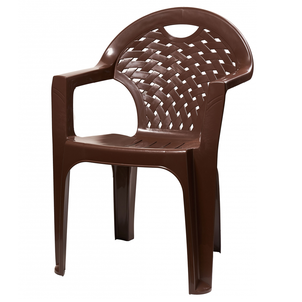 Удобное и комфортабельное кресло выполнено из пластика коричневого цвета. Оно станет отличным выбором для приятного времяпрепровождения в саду или на природе.