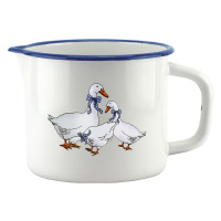 Кружка "Эмаль" изготовлена из высококачественной стали с эмалированным покрытием. Она оснащена удобной ручкой и украшена рисунком. Такая кружка не требует особого ухода и ее легко мыть.
