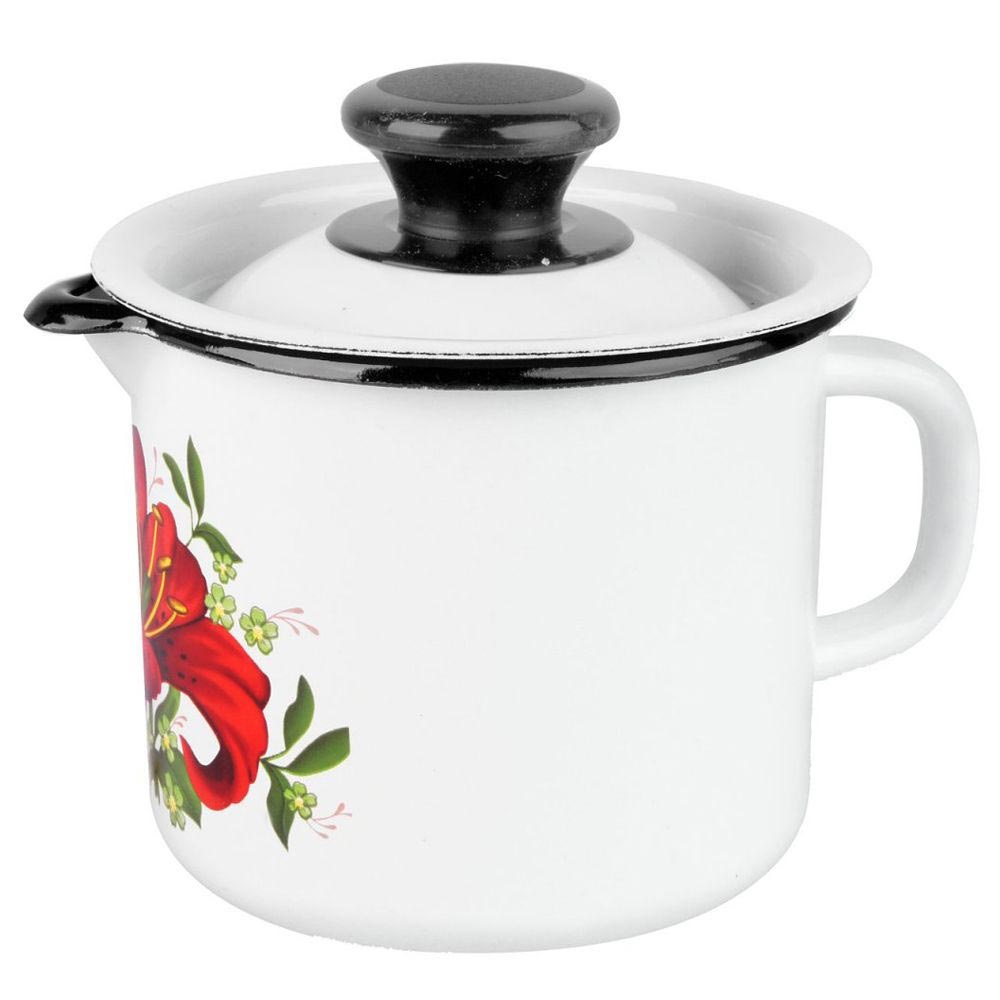 Кружка хозяйственная литровая имеет высококачественное двухслойное эмалевое покрытие с декоративным рисунком.