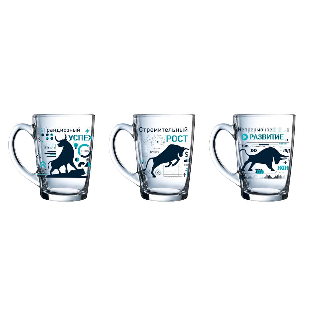 Кружка стеклянная с рисунком "Успешные бычки" в ассортименте.