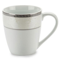 Большая кружка от бренда Fioretta из серии Melody изготовлена из фарфора. По верху наружной нанесен растительный орнамент.