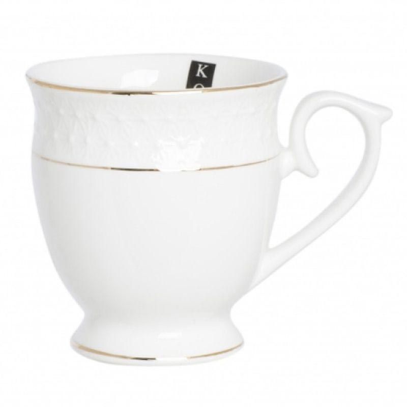 Бочкообразная форма, удобная ручка, декоративный бордюр с уникальный узором и отводка золотом - все это делает кружку нарядной и неповторимой.
