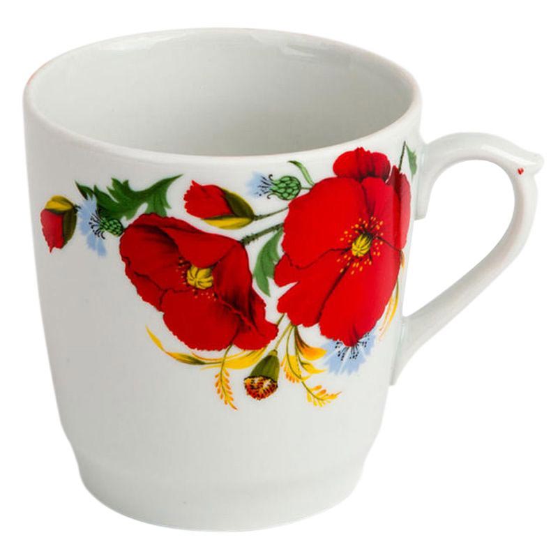 "Классик"Маки красные" - чашка большого объема (400мл) с ручкой. Используется для подачи чая, какао и горячего шоколада, а также холодных напитков,