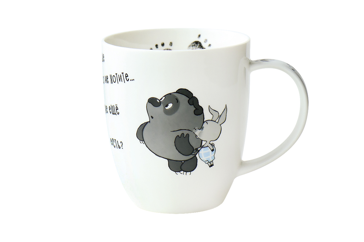 Кружка "Винни Пух" с оригинальным дизайном, украшенная рисунками персонажей знаменитого мультфильма. Элегантный вид и удобная ручка позволяют ее использовать для подачи горячих и холодных напитков. Изделие выполнено из тонкостенного фарфора