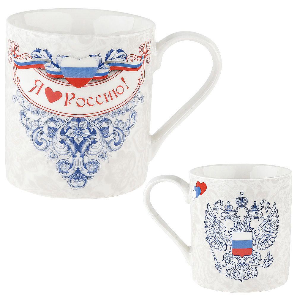 Кружка "Я люблю Россию", изготовленная из высококачественного фарфора, оформлена ярким рисунком.