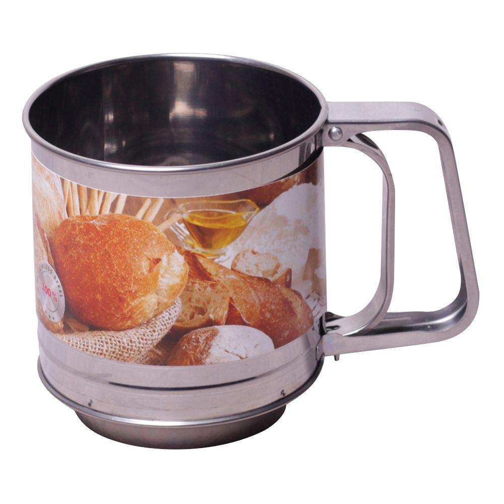 Кружка-сито выполнена из высококачественной нержавеющей стали и оснащена двойным ситовым дном для более эффективного просеивания и специальной ручкой, внутри которой находится пружинка, благодаря чему Вы сможете просеивать нужный Вам продукт с помощью легких нажатий.