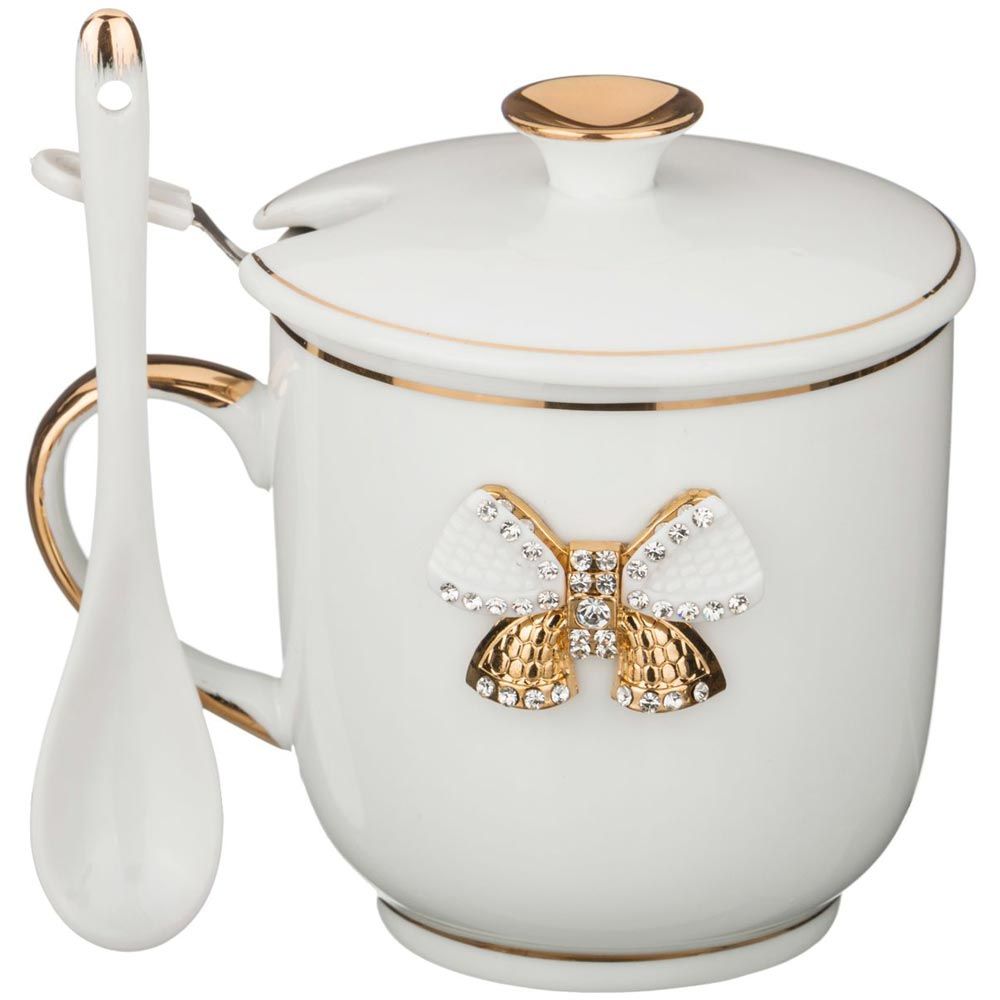 Кружка заварочная "Venezia" 350мл с бантиком и ложкой - нарядный аксессуар для праздничного чаепития.