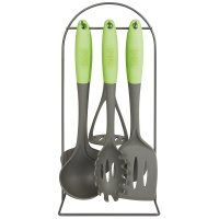 Состав: половник, ложка поварская, шумовка, лопатка с прорезями, картофелемялка, ложка для спагетти, подставка.