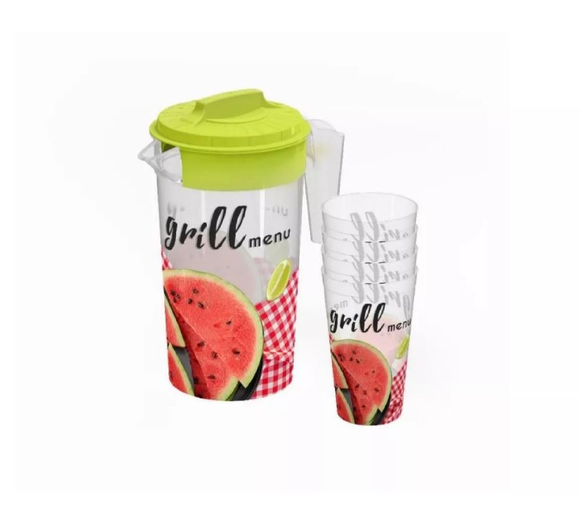 Набор Кувшин с крышкой 1,2 л + 4 стакана 0,4л от компании Полимербыт - универсальное изделие из высококачественного пищевого пластика, используемое для подачи и хранения воды, соков, прочих напитков и жидкостей. Благодаря своему стильному дизайну прекрасно подойдет как для ежедневного использования, так и для праздничных мероприятий. Ручка кувшина выполненная из надежного прочного пластика, имеет удобную форму и облегчает перенос изделия. Форменный носик кувшина помогает в наливании напитков.
