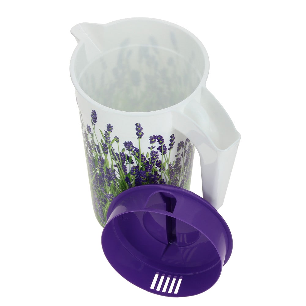 Кувшин, выполненный из пластика и декорированный ярким рисунком, элегантно украсит Ваш стол. Кувшин оснащен удобной ручкой и плотно закрывающейся пластиковой крышкой. Изделие имеет носик для выливания жидкости. Подойдет для подачи воды, сока, компота и других напитков. Кувшин дополнит интерьер Вашей кухни и станет замечательным подарком к любому празднику.