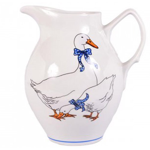 Кувшин «Гуси» от Добрушского фарфорового завода изготовлен из качественного твердого фарфора, имеет удобную ручку. Неброская крупная деколь дополнена синей отводкой, придающий особый шарм изделию.