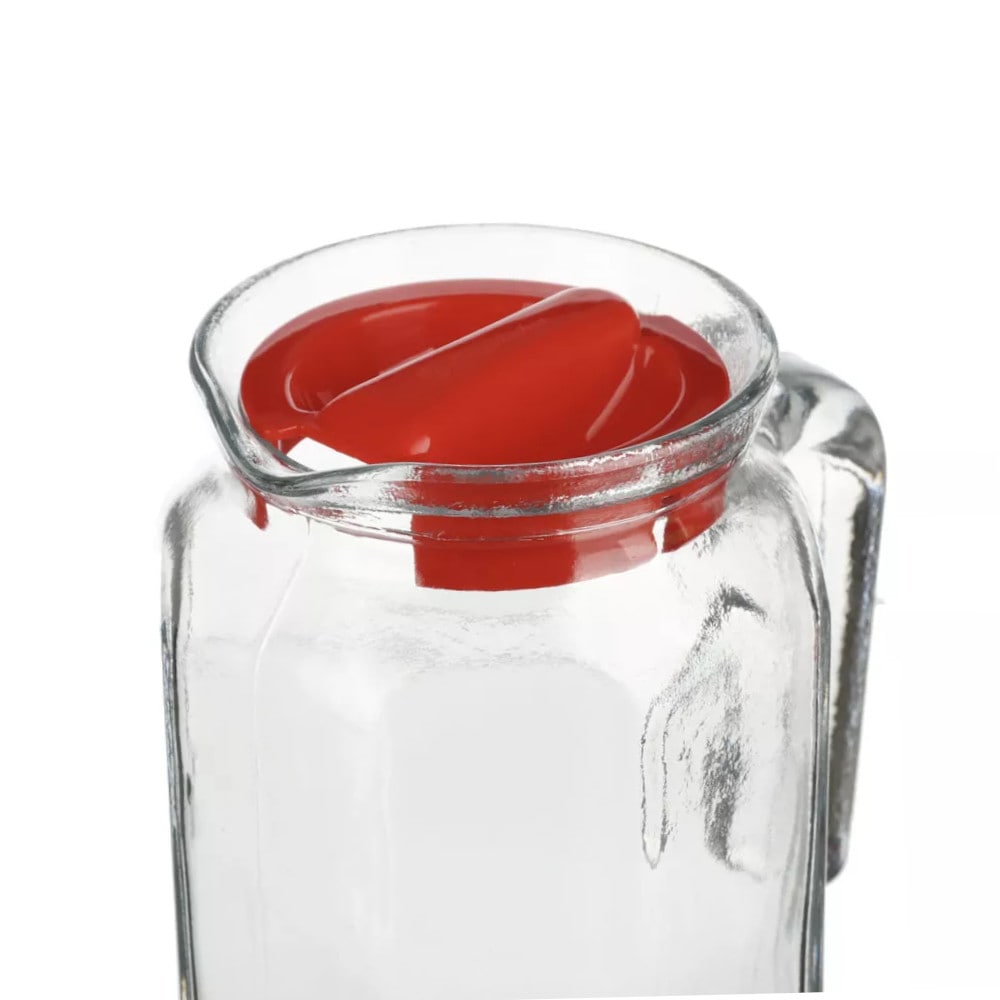 Кувшин Pasabahce Kosem (Кошем) изготовлен из прочного прозрачного стекла, оснащен красной пластиковой крышкой, удобной ручкой. Изделие подойдет для подачи воды, сока, компота или других напитков.