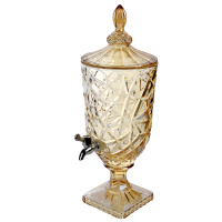 Лимонадник с краном выполнен в виде большого стеклянного сосуда с крышкой, гравированного под хрусталь. Идеально подходит для подачи прохладительных напитков: лимонадов, кваса,сока и морса.Стеклянная лимонадница модный атрибут сервировки стола.