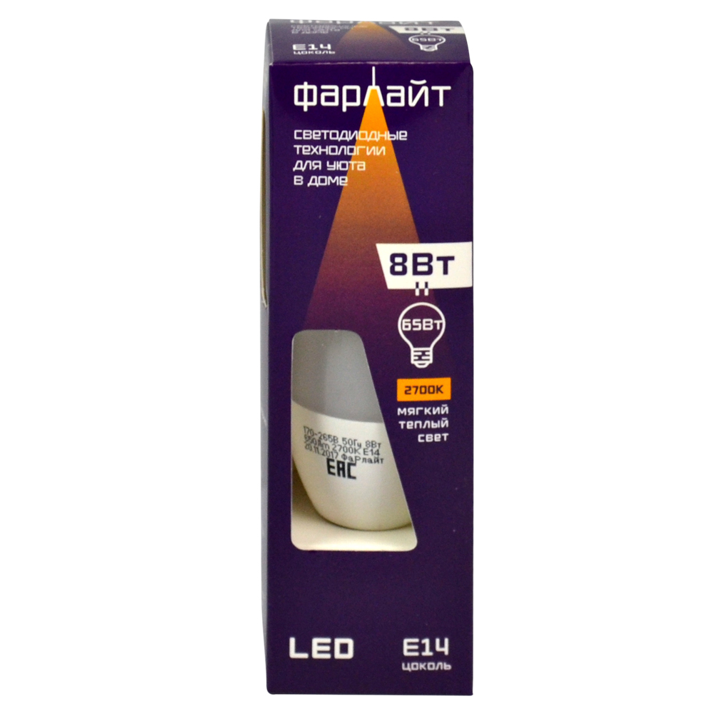 Лампа светит очень ярко. Ее мощность 8 Вт, что эквивалентно 65 Вт лампы накаливания. Лампа излучает яркий равномерный поток света в 650 лм. Светодиодная лампа сочетает в себе лучшие качества от ламп накаливания и современных технологий. Все лампы Фарлайт укомплектованы драйверами с широким диапазоном рабочего напряжения от 170 до 265 В, поэтому при колебаниях напряжения лампы не теряют яркость и не мерцают.