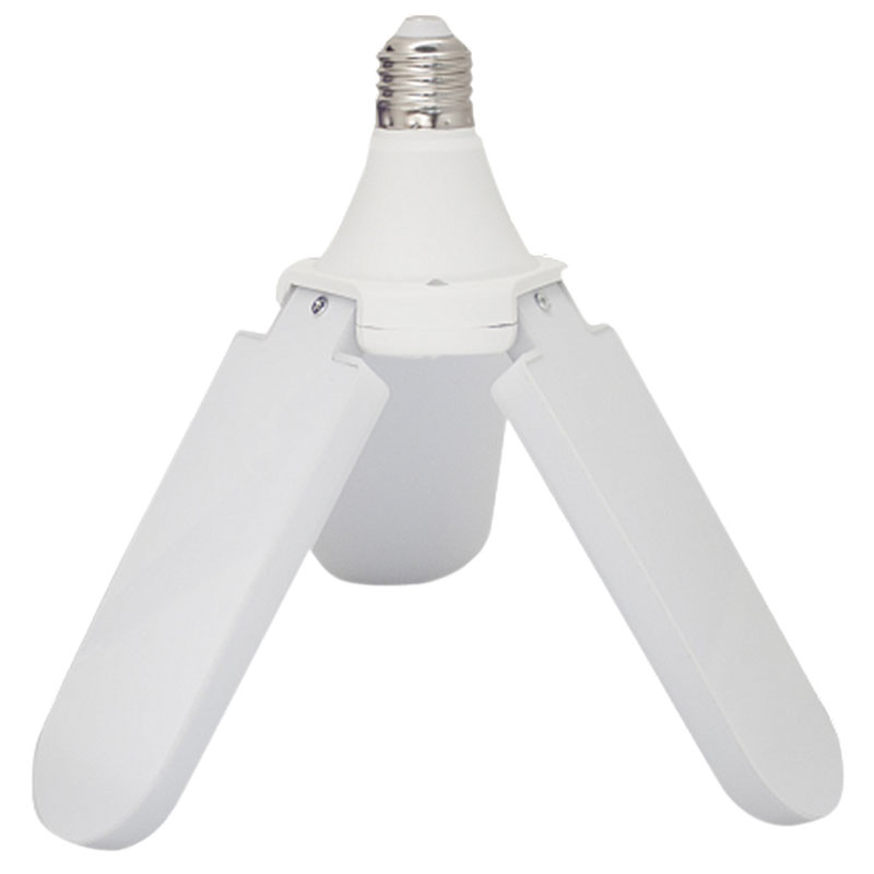 Светодиодная раскладная лампа высокой мощности Т80-3 E27 Фарлайт. Лампа с тремя лопастями идеально подойдёт для современных офисных, складских и подвальных помещений, лофтов, а также освещения гаражей и придомовых территорий. Лампа излучает яркий холодный белый свет в 6500К, который делает пространство визуально свободнее, не искажает цвета предметов, повышает работоспособность.