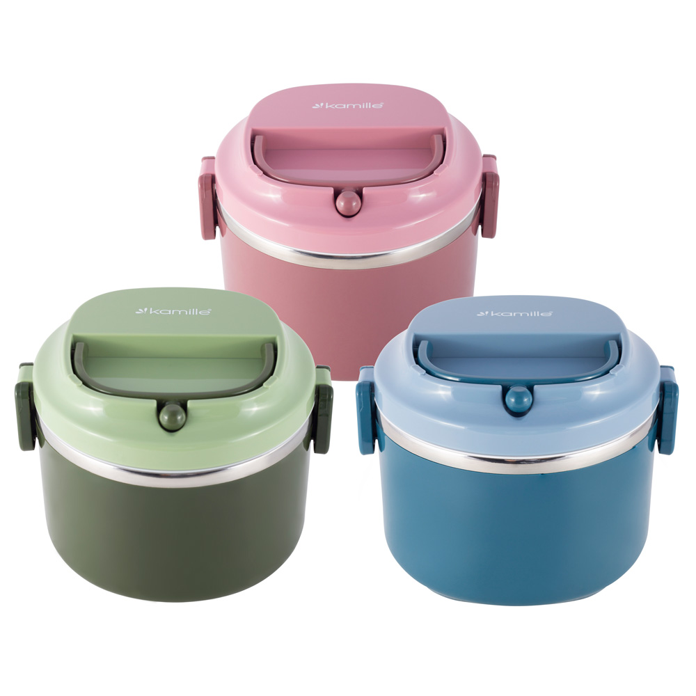 Ланчбокс для пищевых продуктов Kamille КМ-2135 объемом 1 л. Материал: пластиковый корпус, внутренний контейнер из нержавеющей стали.