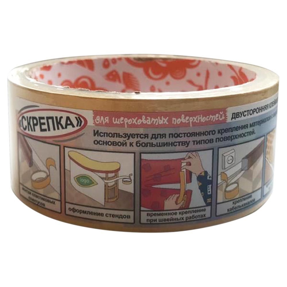 Двусторонняя клейкая лента на тканевой основе (PVC/ПВХ), пропитанная с двух сторон клеевым слоем (на основе синтетического каучука), наружный клеевой слой защищен силиконизированной бумажной полосой.