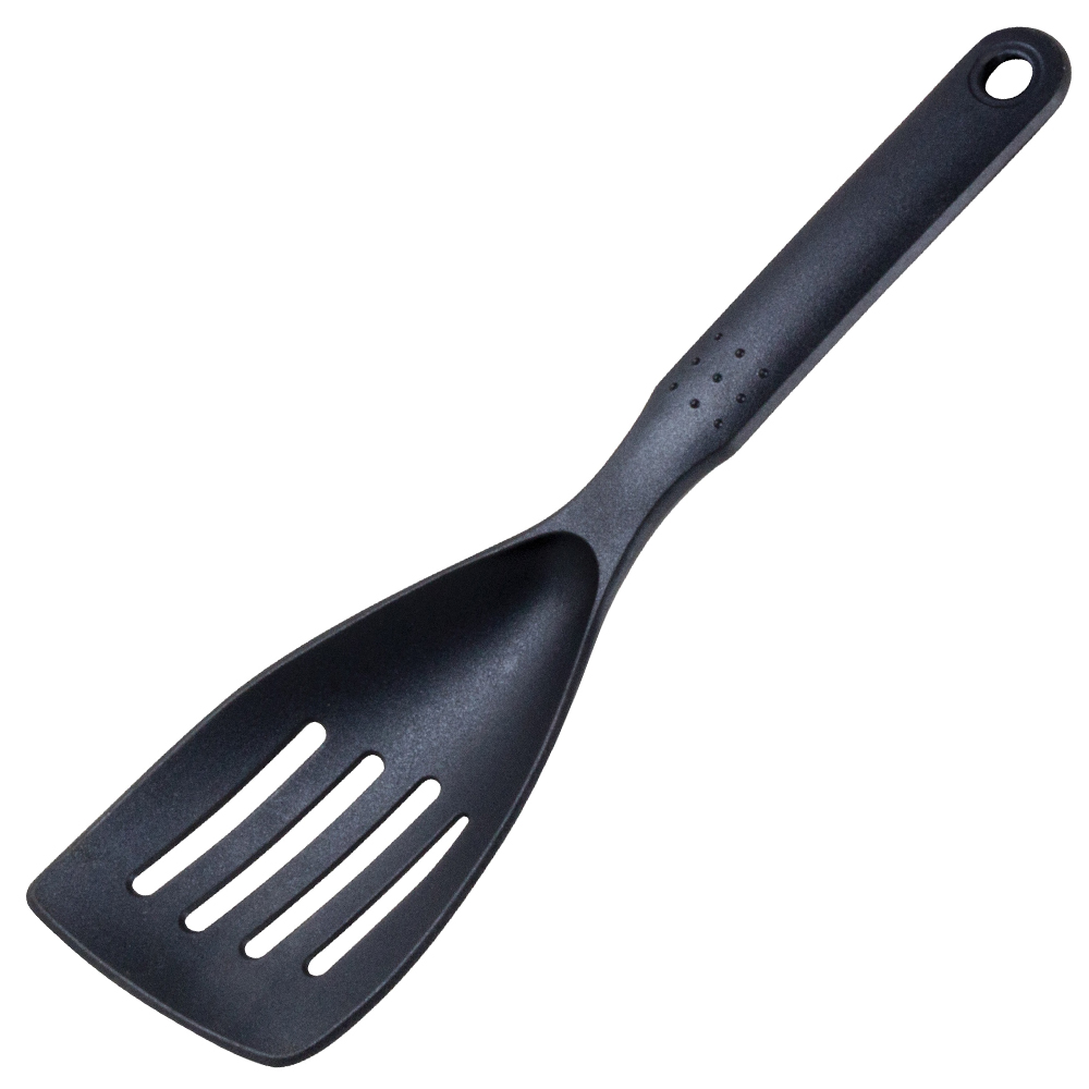 Лопатка с отверстиями малая из черного нейлона CUOCO от торговой марки Mallony. Нейлон не впитывает запахи и легко моется как в посудомоечной машине, так и вручную. Лопатку всегда можно подвесить за крючок, чтобы она была под рукой.