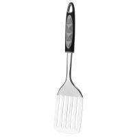 Стальная лопатка с прорезями на длинной ручке. Благодаря прорезям масло или жир стекают, оставляя блюдо максимально вкусным.Ручка не скользит и идеально лежит в руке. Лопатка подходит для мытья в посудомоечной машине.