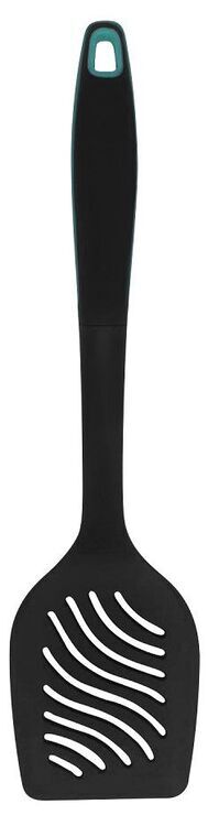 Нейлоновая лопатка с прорезями. Благодаря прорезям в процессе приготовления жир или масло стекают, оставляя блюда максимально вкусным. Пластиковая эргономичная нескользящая ручка удобно лежит в руке. Лопатка подходит для мытья в посудомоечной машине.