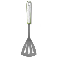 Кухонные аксессуары из коллекции Hitt Botanica станут незаменимыми помощниками для каждой хозяйки. Разлить горячий суп или компот, соус, крем, молоко, перевернуть блинчики или котлеты, смазать противень, взбить в пену белки или же быстро почистить овощи - вам просто не обойтись без этих помощников на кухне. Рабочая часть лопатки Hitt Botanica изготовлена из термостойкого нейлона, который бережно взаимодействует с антипригарными поверхностями. Ручка эргономичной формы с мягким покрытием из термопластичной резины не нагревается, ее удобно держать в руке. Отверстие для подвеса позволяет легко и быстро разместить ваши кухонные принадлежности на кронштейне. Все изделия можно мыть в посудомоечной машине. В коллекции Botanica представлен полный ассортимент всех необходимых кухонных аксессуаров и принадлежностей. Два цвета ручки на ваш выбор -зеленый или сиреневый. Пусть приготовление станет настоящим творчеством!