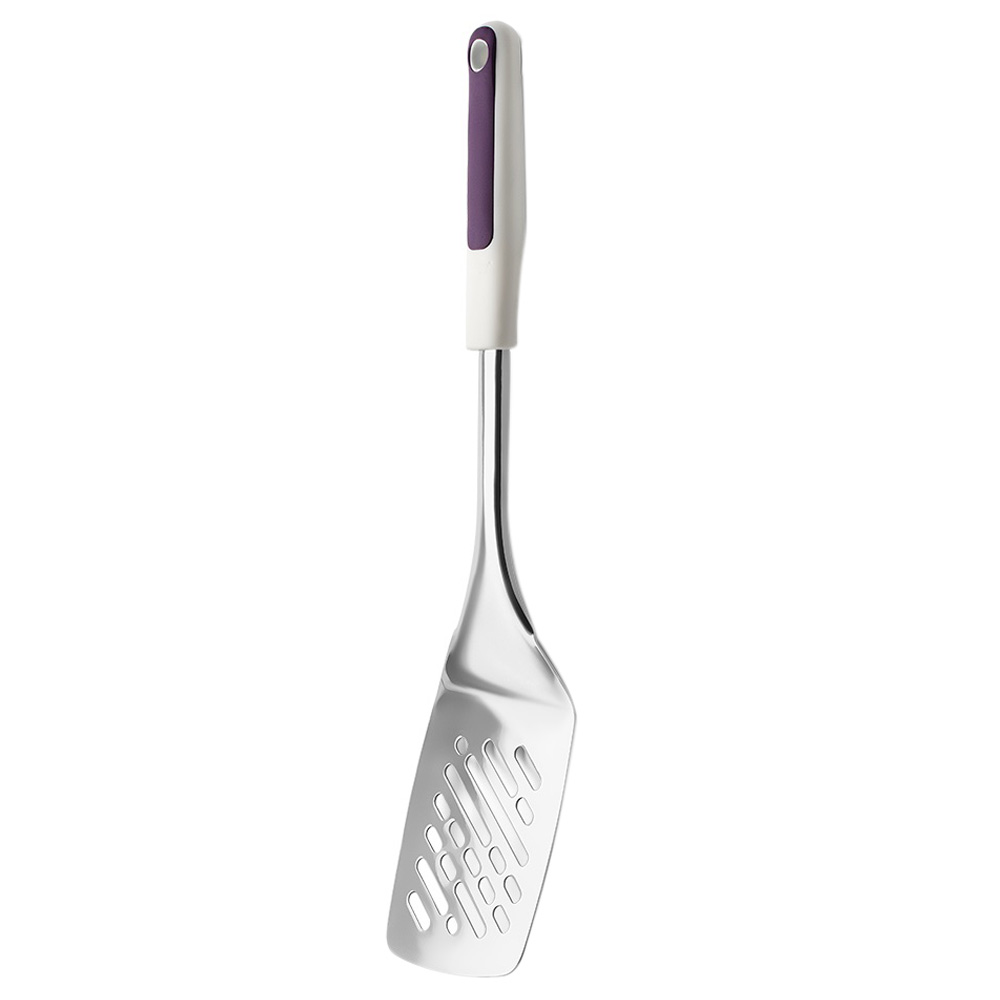 Лопатка предназначена для перемешивания и переворачивания продуктов в процессе жарки или тушения, а также для подачи готовых блюд. Прорези на лопатке позволяют стекать излишкам масла, соуса или жидкостей. Лопатка имеет удобную рукоятку с противоскользящей вставкой и петлю для подвешивания.