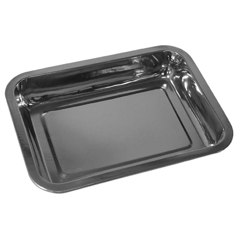 Противень изготовлен из нержавеющей стали.