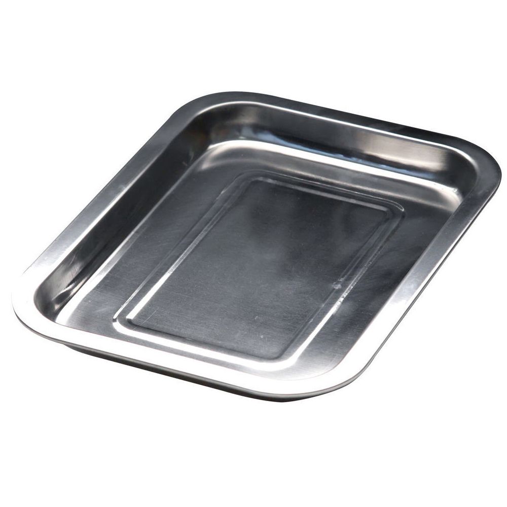 Противень изготовлен из нержавеющей стали.