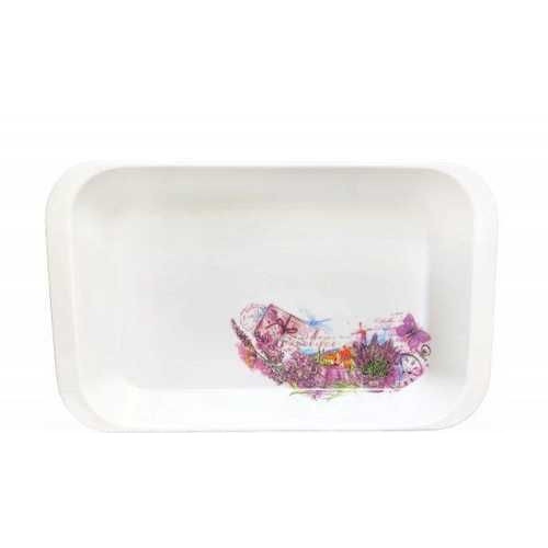 <comment>Лоток понравился, рисунок приятный, в стиле прованс. Размер хороший, 32 см в длину – как раз для запеканки. Фарфор, конечно, мог бы быть и потолще, но за такую цену нормально. Доставили быстро, правда, коробка немного помялась, но с лотком все в порядке.</comment>