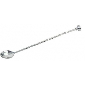 Изделие имеет удлинённую, скрученную посередине ручку, на конце которой расположена кнопка, позволяющая аккуратно наливать жидкие ингредиенты будущего напитка в стакан, создавая эффект наслаивания.