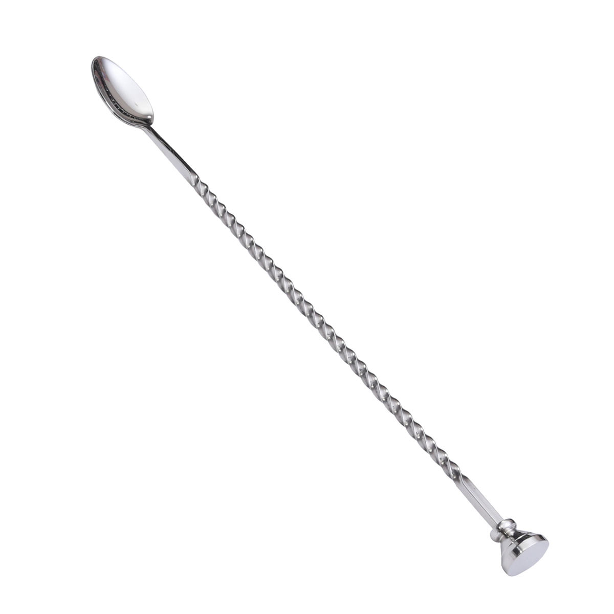 Ложка барная с металлической кнопкой - многофункциональный инструмент, которым бармены готовят разные по составу и сложности коктейли. Бармены используют спиральный стержень как направляющую для приготовления слоистых коктейлей или наполнения бокала жидкими ингредиентами.