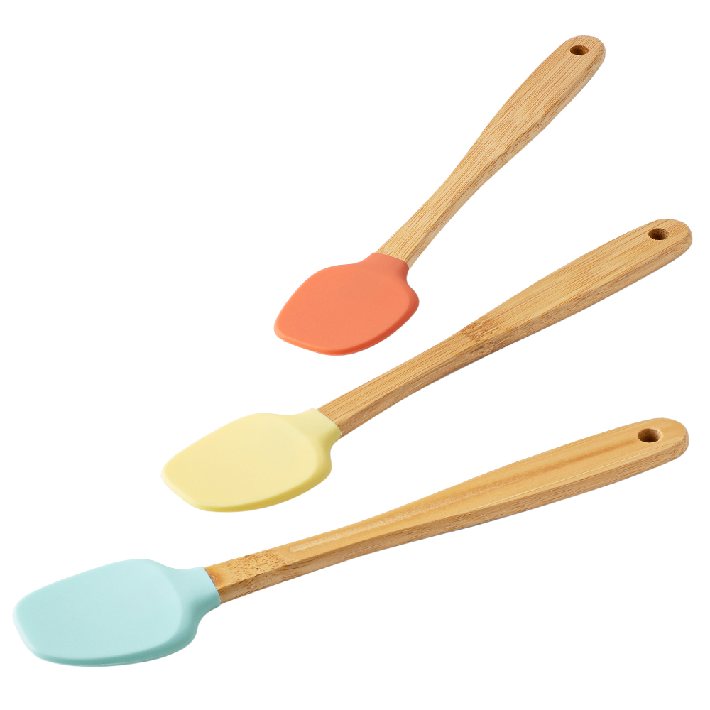 Рабочая часть ложки изготовлена из силикона и выдерживает температуру до 220˚. На бамбуковой ручке есть отверстие для подвешивания.