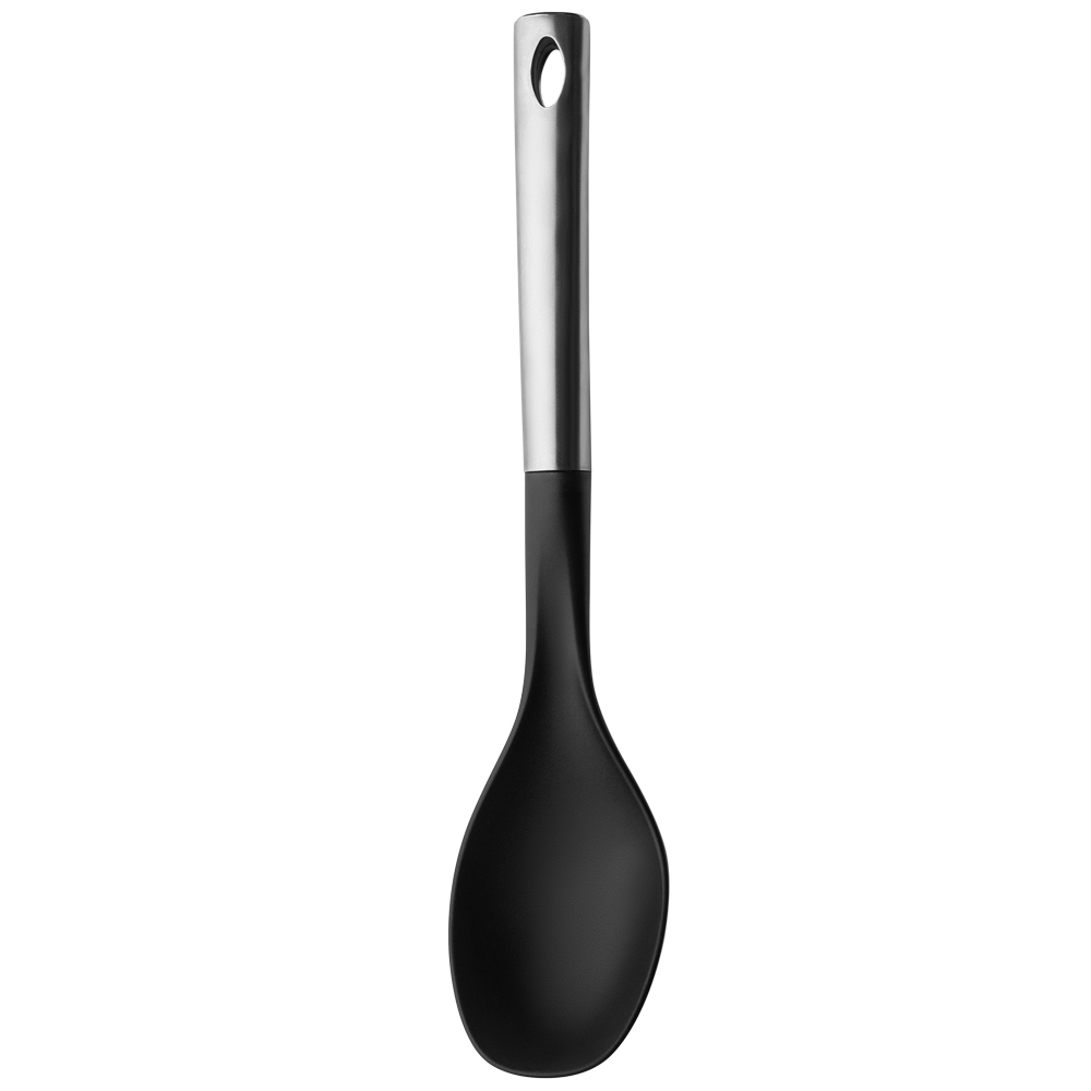 Классическая ложка из нейлона "Strict" со стальной ручкой отлично дополнит любую кухню. Ручка имеет эргономичную форму и не скользит. Подходит для мытья в посудомоечной машине.Основной материал:нейлон. Материал ручки:нержавеющая сталь.