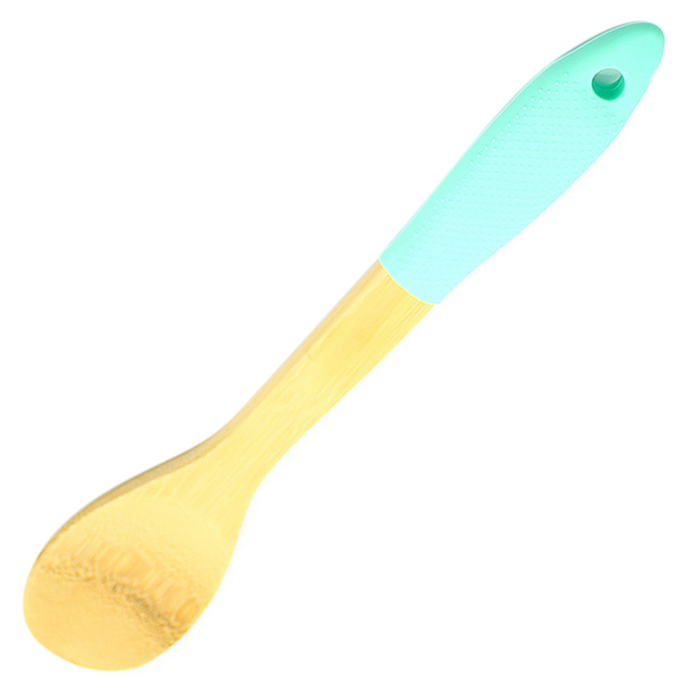 Ложка кулинарная Катунь изготовлена из бамбука, она не царапает посуду с антипригарным покрытием. Силиконовая вставка на ручк, отверстие для подвеса.
