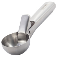 Ложка для мороженого Kamille с выталкивателем. При помощи такой механической ложки можно создавать не только десерты из мороженого, но и делать идеально ровные шарики. Приготовить их можно из мякоти фруктов, любого крема, не слишком густого теста, овощного или даже мясного пюре. Стол, украшенный такой красотой, поразит практически каждого человека. Встроенный механизм с легкостью позволяется вытолкнуть шарики продукта из «черпалки».