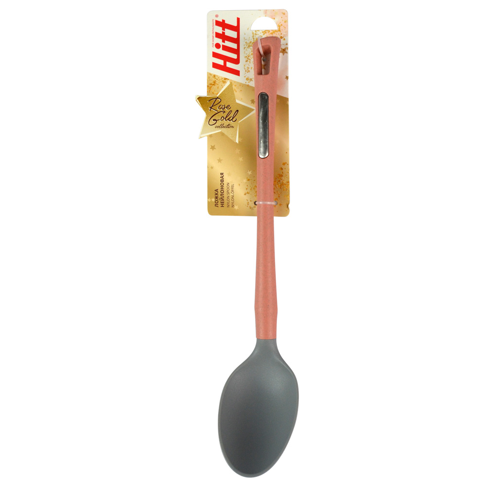 Рабочая часть кухонных аксессуаров Hitt Rose Gold изготовлена из пищевого нейлона. Ложка подойдет для посуды с антипригарным и деликатным покрытием. Ручка нежно-розового цвета имеет покрытие soft-touch и отверстие для подвеса.
