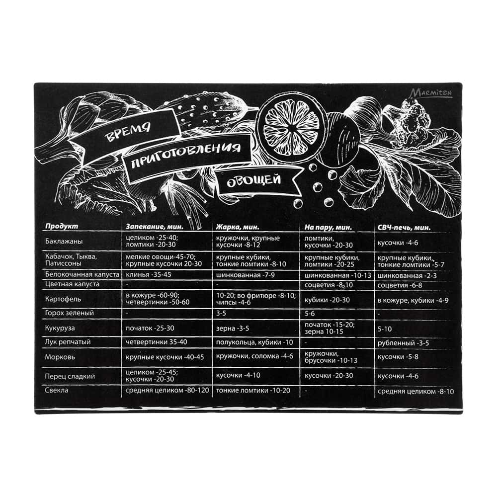 Магнит-шпаргалка "Время приготовления овощей" от бренда Marmiton станет удобной и полезной вещью на вашей кухне.
