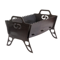 Изготовлен из стали толщиной 2мм. Благодаря замкам в форме крючков, держащим крепко конструкцию, дно мангала при нагревании не провалится. Насечки для 8 шампуров.