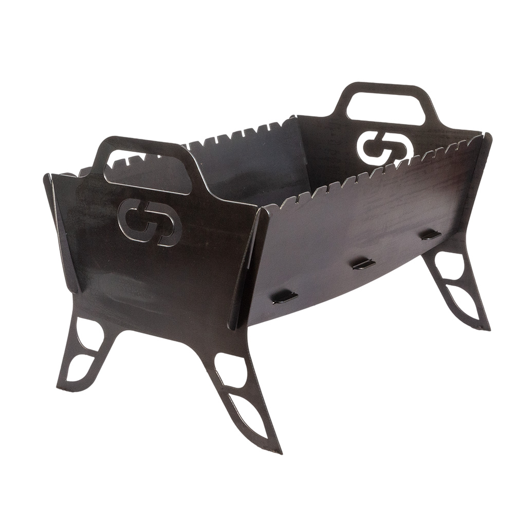 Мангал изготовлен на плазменной резке. Есть возможность вырезать логотип и/или надпись по индивидуальным пожеланиям клиента.