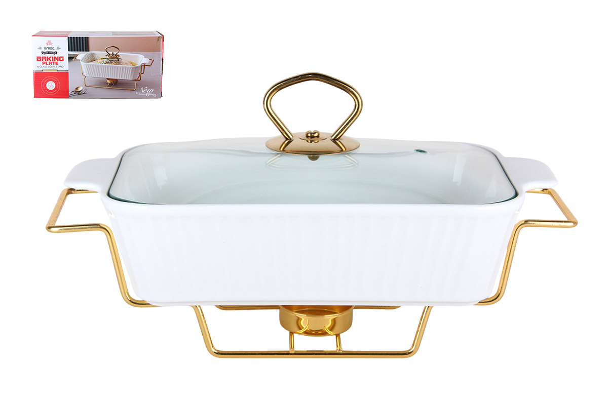 Удобный мармит выполнен из фарфора и установлен на металлический каркас. Красивая посуда предназначена для сохранения горячей еды и ее первоначального вкуса в течение продолжительного времени.