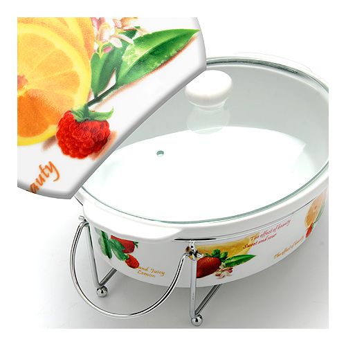 Стеклянная крышка с удобной ручкой плотно прикрывает чашу сверху, в свою очередь также не давая остыть блюду.