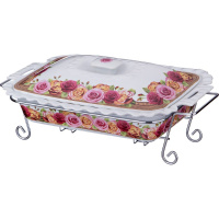 Мармит из фарфора на металлической подставке подогревается при помощи двух греющих свечек.