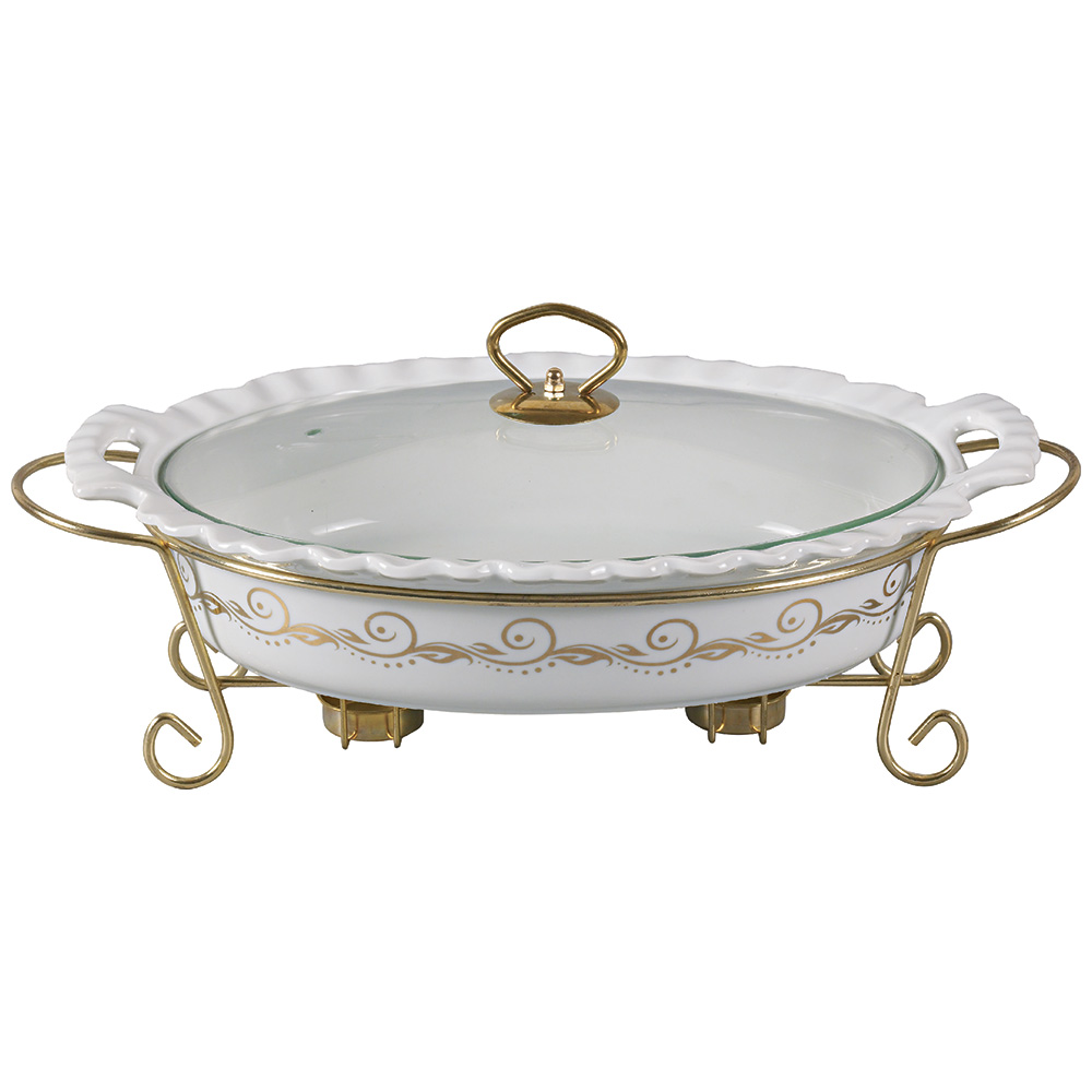 Мармит состоит из нижней части-подставки, ёмкости из жаропрочной керамики и крышки из жаропрочного стекла.