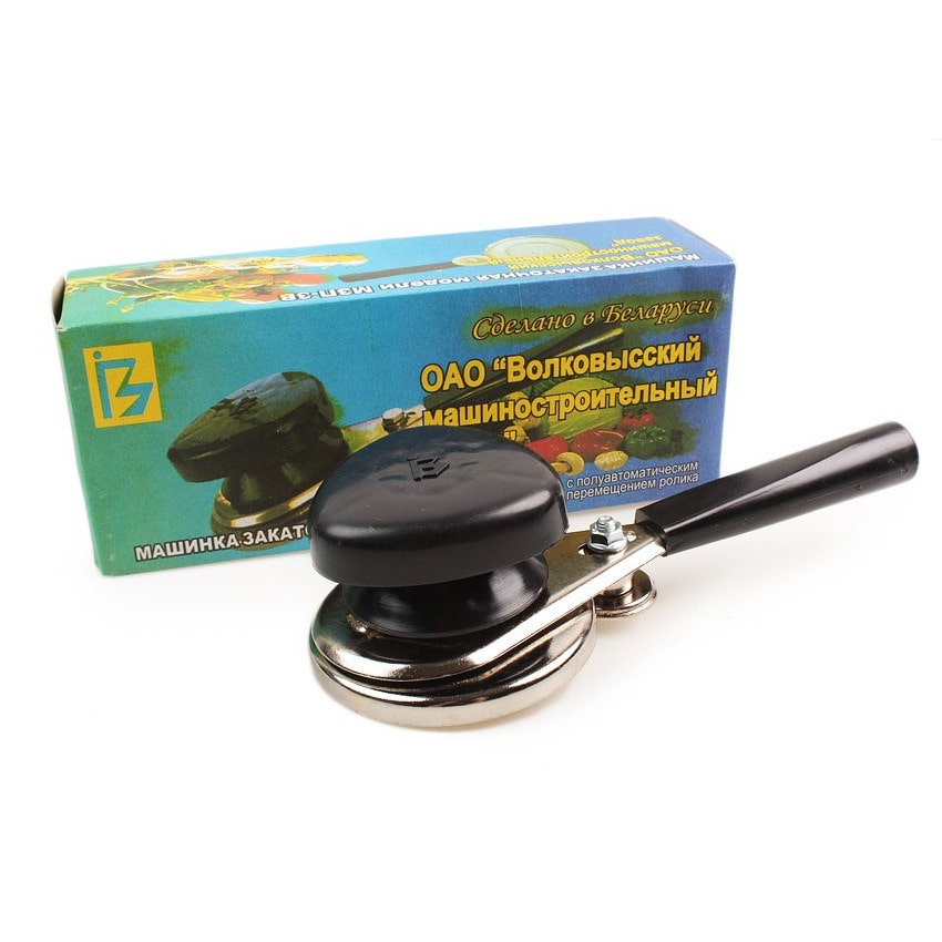 Закаточная машинка (с полуавтоматическим перемещением ролика) предназначена для герметичной закупорки стеклянных банок с венчиком горловины типа 1-82 металлическими крышками при домашнем консервировании овощей, ягод и фруктов.