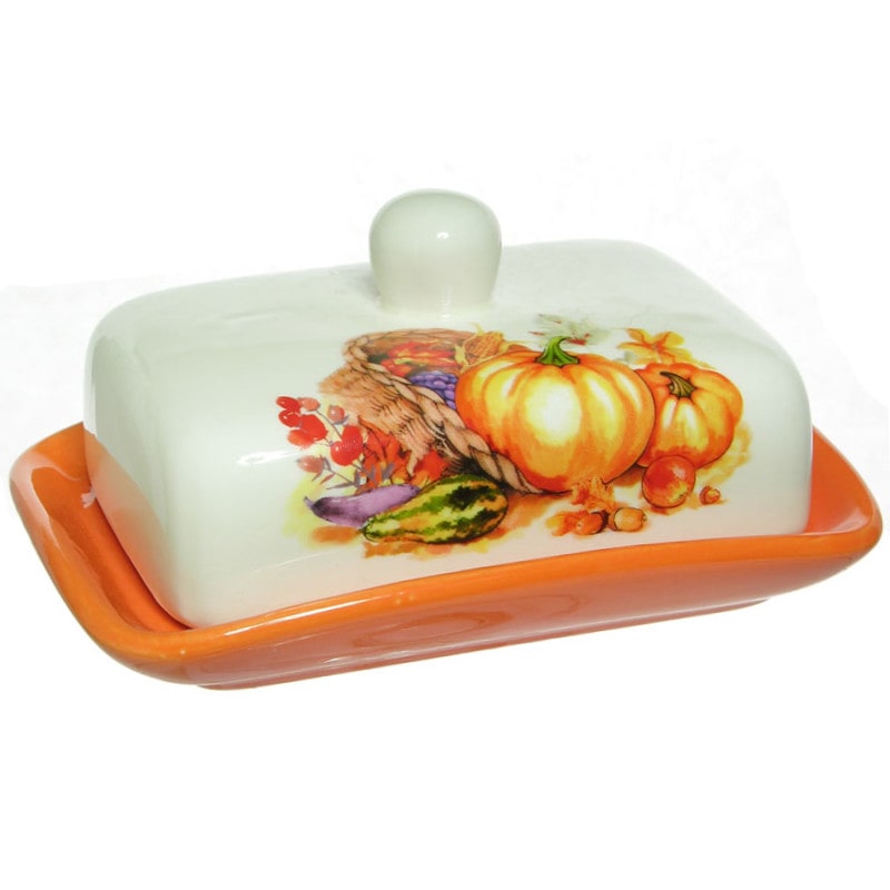 Маслёнка керамическая в подарочной упаковке с рисунком Тыква.