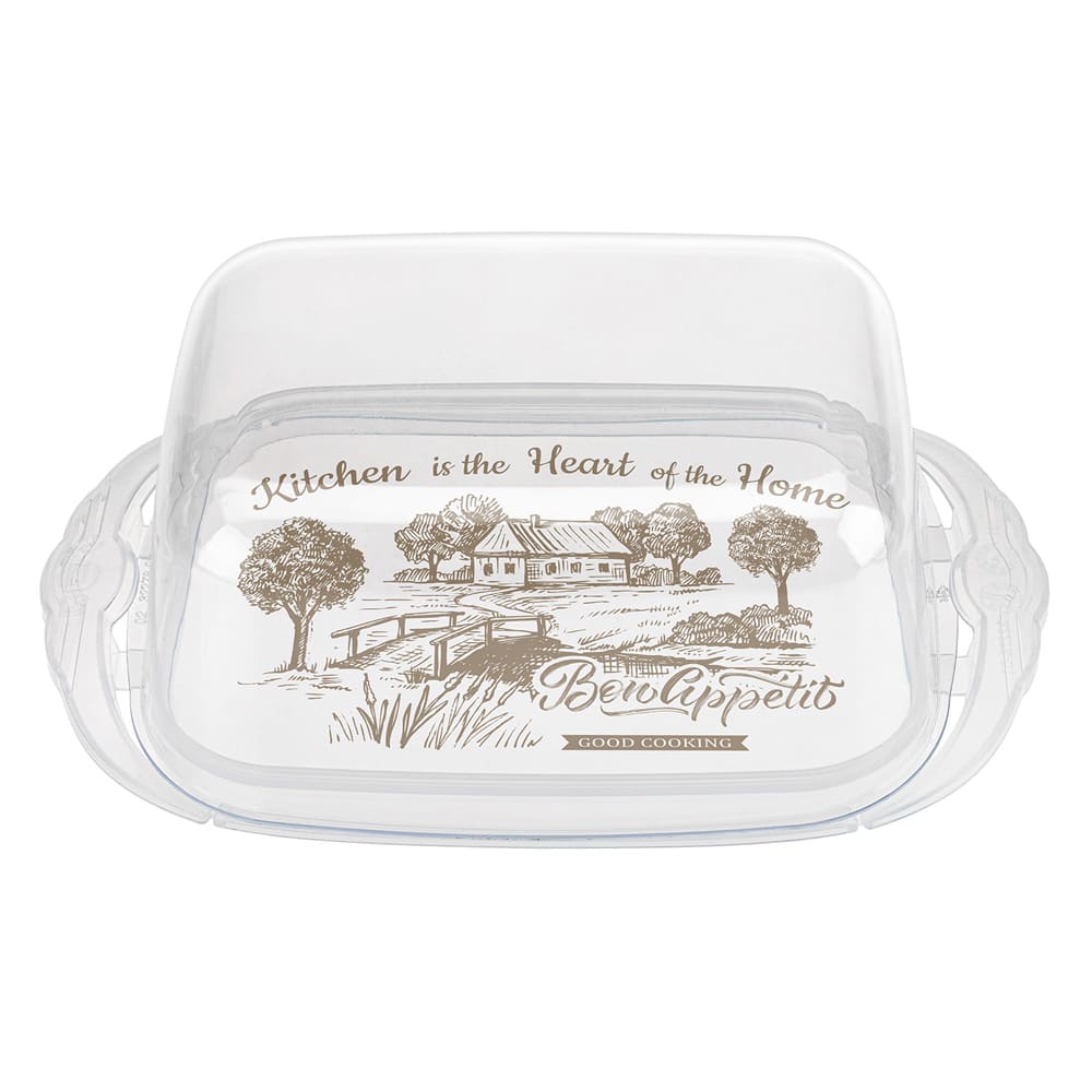 Размеры и объем масленки Phibo позволяют оптимально хранить стандартные упаковки сливочного масла весом 200г и 250г, при этом она компактна и не занимает много места. Масленка состоит из основания с двумя ручками-фиксаторами и прозрачной крышки, которая защищает содержимое от посторонних запахов. Закрытую масленку можно переносить, держа за крышку, которая надежно удерживается боковыми фиксаторами. После нажатия на фиксаторы крышка легко снимается. Стильный декор на обратной стороне основания маслёнки добавит индивидуальности вашей кухне. Пластиковая поверхность бережна к ножам и не тупит остриё.
