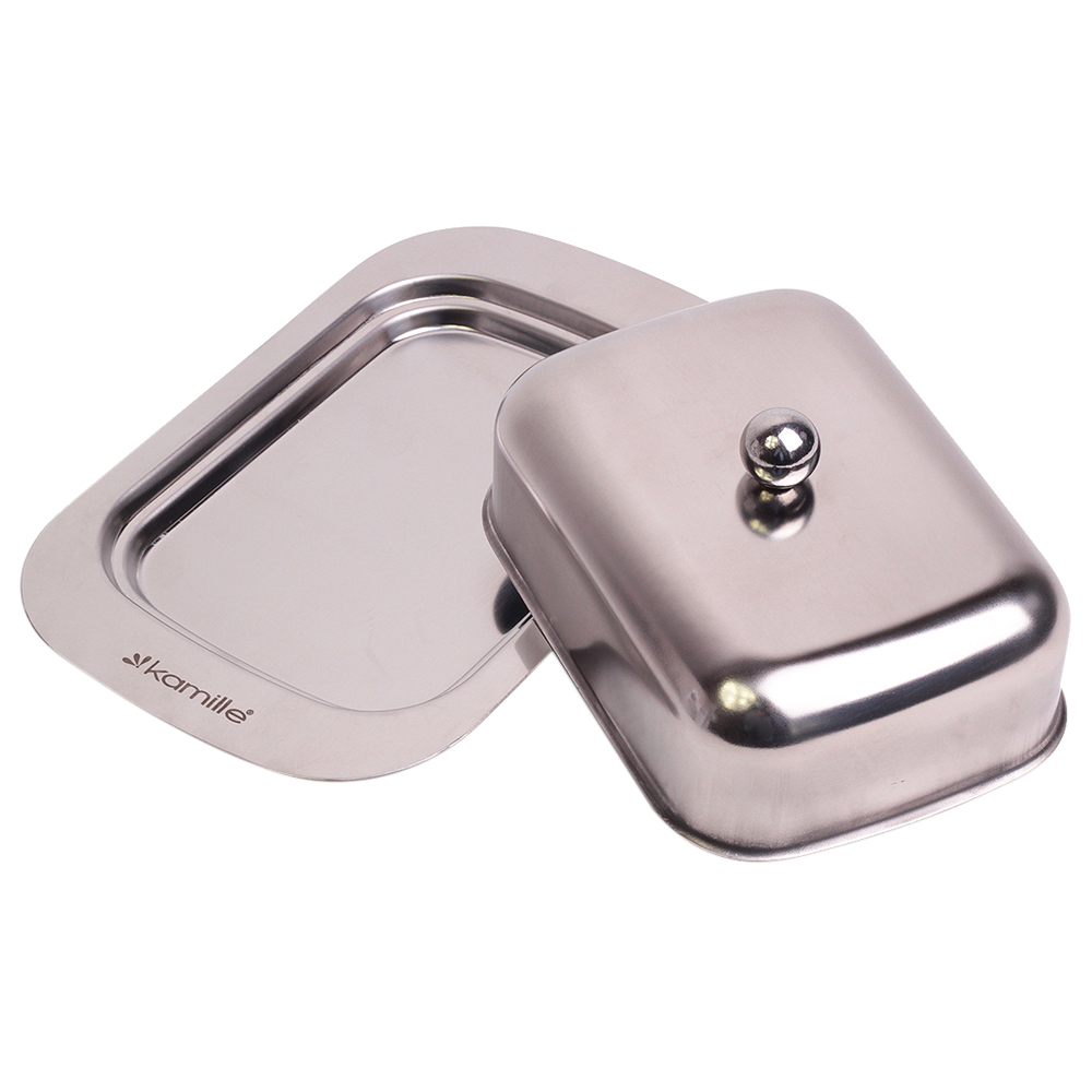 Масленка — абсолютно незаменимый аксессуар на кухне для хранения сливочного масла в холодильнике. Этот продукт имеет свойство быстро впитывать различные запахи, поэтому его просто необходимо хранить в особых условиях, и в этом случае пригодится красивая и практичная масленка. Ее зеркальная полировка и крышка с ручкой поможет Вам сохранить свежесть масла и непременно подойдет к интерьеру Вашей кухни.