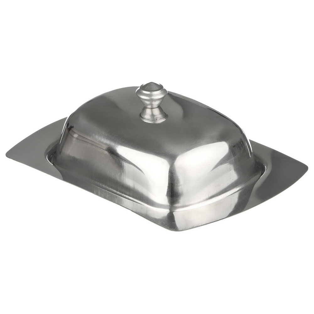 Масленка подойдет для хранения масла и красивой сервировки. Изделие состоит из подноса и крышки из нержавеющей стали . Сливочное масло в ней долго остается свежим, а при хранении в холодильнике не впитывает посторонние запахи.