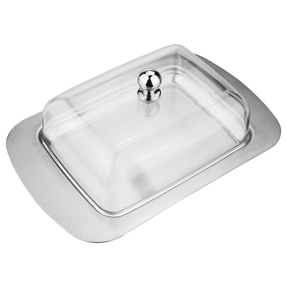 Масленка изготовлена из высококачественной нержавеющей стали с пластиковой крышкой.